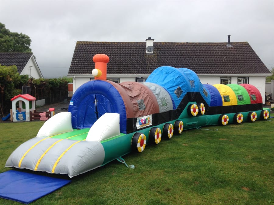 This is a 2 Lane tunnel Obstacle Course. This Train Obstacle Course is suited to smaller kids. It is 40 ft in length and fully enclosed, making it suitable even in wet weather. Suitable for both boys and girls. It is going to be perfect for birthday parties, communion or any family fun day. Kids are going to love playing and bouncing around in our Train Obstacle course.