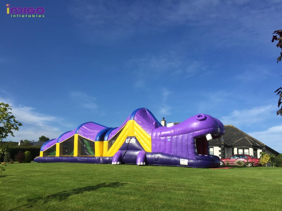 This giant purple Hippo Obstacle Course is very impressive. Fully covered with Safety netting to each side for ease of supervision. It is going to be perfect for any occasion, from birthday party to a big field event. It will definitely make your party a success!