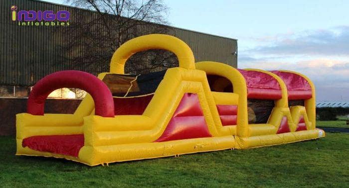 Our huge Red and Yellow Obstacle Course is very eye catching and we predict it to be a hit with children. It will be perfect for boys as well as for girls. Just watch the kids face light up as they enter this massive obstacle course. It guarantees hours of fun and excitement. The fun starts just by looking at this big inflatable. It is fully covered, so even a rainy day won't ruin the fun. It has safety netting to each side for ease of supervision. This obstacle course would be a great addition to any party!