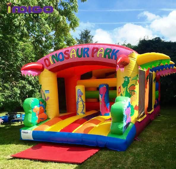 This colorful dinosaur themed Obstacle Course will guarantees lots of fun and excitement. It's suitable for kids of all ages. It will fit into smaller gardens. It is fully covered so even a rainy day won't ruin the fun! It also has nets for ease of supervision.