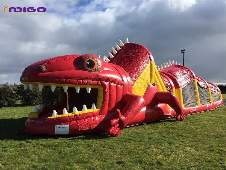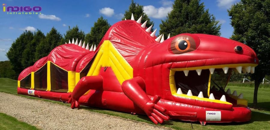 Giant Lizard Obstacle Course. This is one of our most popular Obstacle Courses this season. Includes Slide, Tunnels, Rock Climbing Wall, Bish Bash & Bouncy Areas! Ideal for all ages. Fully covered with Safety netting to each side for ease of supervision.
