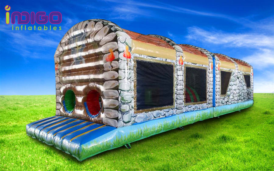 Brand new! The Knights Castle Enclosed Obstacle course is fully covered, making it suitable for even wet weather. The course includes a port-hole entrance, jump through area, tunnels, pop-up tubes and the all important slide to finish. This unit has visibility netting for light and ease of supervision. It is suitable for both boys and girls.
